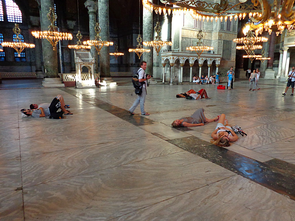 Prokopius’un da tasvir etmiş olduğu gibi Ana nefime adımınızı atıp başınızı yukarıya kaldırdığınızda, kubbemin sanki Gökten altın zincirlerle asılmış olduğunu zannedersiniz. Gördüğünüz gibi mimari açıdan dönemimin mucizesi olan mekanım birçok tarihçiye ve gezgine kubbemle ilgili gerçek üstü yazılar yazdırmıştır. Bu arada, İmparator Justianius’a beni iki kez yıkılmış olduğum yerde tekrar ve daha muhteşem bir mimariyle ayağa kaldırmasına müteşekkirim ama, şehrimin, insanlarının ve kendimin çoğunlukla dini politikalar yüzünden çıkan çatışmalar sonucunda çekmiş olduğumuz acıları görmezden gelemiyeceğim. Halkın yaşamış olduğu işgallerin, inanç değişimlerinin, devrimlerin, ayaklanmaların, çatışmaların, yok oluşların, zorbalıkların, depremlerin ve talanların bıraktığı izler mekanımın bazı köşelerinde halen görülebilmekte. Evet, şehrimin ve halkının yaşadığı her şeyi bizzat kendim de derinden yaşadım. Onların geçirdiği iyi veya kötü değişimlerin hepsi benim mimari gelişimimi de etkiledi. Bu değişimlerin bir kısmından memnun olduğum gibi bazılarından da hiç hoşnut olmadım. Örneğin, Ata şehrimiz Byzantion zamanında mekanımda ilahlara sunulan hayvanları kurban etme geleneği daha sonra Hiristyanlık döneminde devam etmedi. Bu değişimin beni oldukça mutlu etmiş olduğunu itiraf etmeliyim. Mekanımda ister hayvan ister insan olsun kan dökülmesine artık dayanamıyordum.